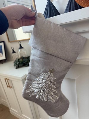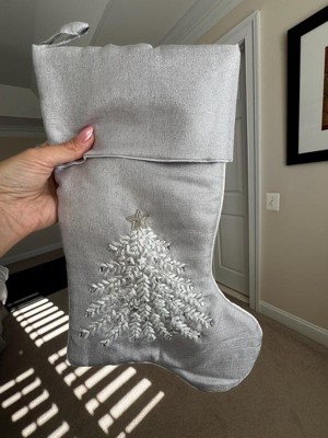 [This review was collected as part of a promotion.] This stocking is so pretty! The silver is distinguished and classic while still feeling really wintery and festive. It’s a great size too! I especially love the embroidery - it’s beautifully done and elevates the whole piece. Love this as an alternative to classic Christmas colors!