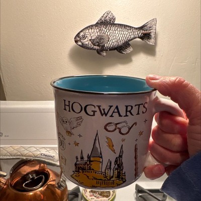 Silver Buffalo Harry Potter Hogwarts All Over Icons Destination Ceramic Camper Mug | Holds 20 Ounces