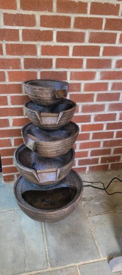 34" Resin Outdoor 5-Tier Modern Bowl Cascading Waterfall Fountain with LED Lights Bronze - Alpine Corporation: Polyresin Garden Decor, 24 LEDs