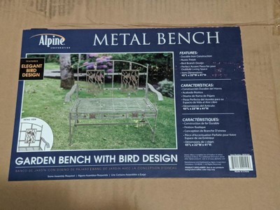 41" x 45" Metal Outdoor Garden Bench with Bird Design Gray - Alpine Corporation