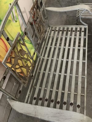 [This review was collected as part of a promotion.] A month I brought an Alpine corporation outdoor 2 person Medal garden bench with bird design For my backyard, and it is a beautiful addition to my backyard it is easy to assemble ,it has rained and not have rusted, it's so lovely and brings such joy to my backyard