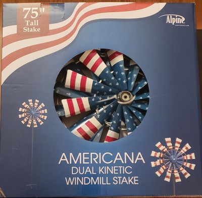 [This review was collected as part of a promotion.] Alpine Corporation 75" Tall Outdoor Patriotic Metal Dual Kinetic Wind Spinner Stake Yard Decoration, Red, White, and Blue is really cute and looks so nice in my back yard. I did have some trouble understanding the directions, but my husband was able to figure out how to assemble. We set this outside, and have been pretty happy with the added decor. I do have some concern about how the paint on this product will hold up outside, but it is cute nonetheless.
