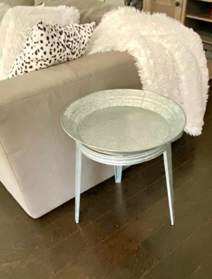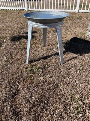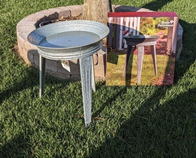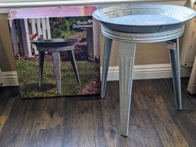 [This review was collected as part of a promotion.] I love this vintage look and style. I’m a big fan of anything galvanized. I was going to use this as a birdbath outside, but I like the look of this as an end table in my living room. Either way, it is super cute and durable. It was easy to put together. The top part swivels, which is a nice feature. I really like this piece.