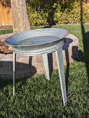 [This review was collected as part of a promotion.] This is a Rustic Farmhouse Galvanized Bird bath, it's very cute and it definitely looks like it's rustic from a farmhouse! The bird bath stands at 21" in height, for me I worry the wandering cats in our neighborhood could hurt the birds. Perfect size for apartments with balconies. The product is made well, and the style is very charming. The only con is it doesn't work for my area.