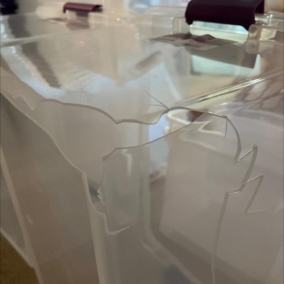 Hi Leelids! We are sorry to hear the inconvenience of the lid breaking on your 110 Qt. ClearView™ Latch Box. Product quality and customer service are very important to us. Please reach out to us at Consumer-Team@sterilite.com for further assistance.