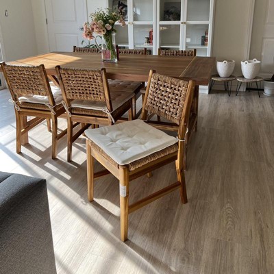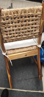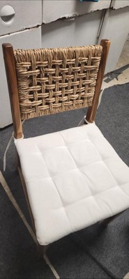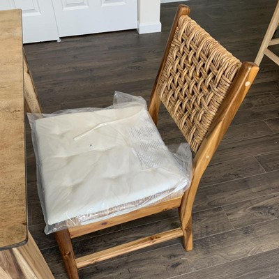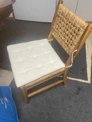 Looking to add some extra seating to your dining area? This Set of Two Temescal Valley Wood and Woven Dining Chairs with Cushions from Threshold™ makes the perfect pick. These dining chairs come with a hardwood frame and a woven seat and back, plus a cream tie-on cushion to provide comfort, and the neutral color scheme makes it easy to coordinate with your existing decor. With an armless construction and slightly flared legs, these charming chairs make a versatile addition that easily elevates the rest of your dining decor.