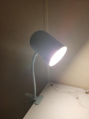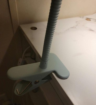 [This review was collected as part of a promotion.] This lamp is great. I like how it clips securely to the table or desk. The adjustable neck allows you to put the light exactly where you want it. The shape of the light canister is stylish and really focuses the light in a certain direction. It's fun, stylish, and it's a really pretty matte teal green.