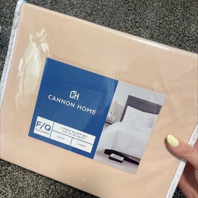 Cannon's solid cotton percale bedding collection is the ideal combination of luxury and durability. Offered in multiple colors, this bedding set will work with any bedroom and style. The tight percale weave produces a soft and smooth fabric with breathable cotton threads. This high quality duvet set has a thread count of 200 and is made to impress. The comforter insert is set in place with a button enclosure and ties. Face and back are 200 thread count, 100% cotton percale weave for a nice crisp feel. This item is machine washable, but care should be taken to wash in appropriate size equipment to preserve the items quality. This item is imported from India. Set includes: one duvet cover 68 inches wide by 90 inches long with button colsure and corner ties and one standard sham 20 high by 26 wide with a 2 inch flange. Comforter insert is not included and can be purchased separately.