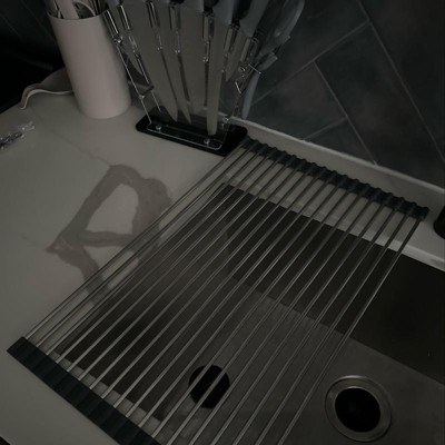 Over the Sink (Roll Away) Dish Drainer Silver - Brightroom™: Stainless Steel Drying Rack Mat, Hand Wash, 20.5"x13"