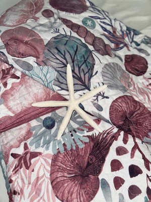 VCNY Full/Queen Ivory Coast Disperse Print 3pc Reversible Quilt Set Blue/Green: Coastal Microfiber Bedspread, Hypoallergenic