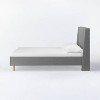 Revamp your sleeping area with the modern design of this Encino Fully Upholstered Platform Bed from Threshold™ designed with Studio McGee. Made with a wooden frame, this platform bed features a wingback design to add contemporary style to your sleeping area. It comes fully upholstered to help you sit and lean back in comfort, while the solid-color design offers easy integration into a variety of decor styles.