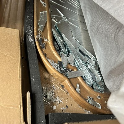 Thought I’d get lucky… nope! Reviews were accurate and it came completely shattered. I now have the pleasure of dragging it down 3 flights of stairs and figuring out how to fit it in my car to ship off for returns. Don’t even waste your time.