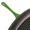 - This grill pan features a helper handle to easily maneuver the pan from stovetop to oven or serving dish and two pour spouts on each side to drain excess liquids or pour out sauces. The square shape provides ample cooking space while its ridged grill lines enhance the presentation of your food and help to drain excess fat, making your meals healthier.