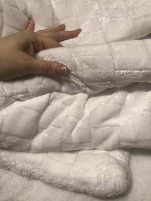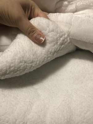 [This review was collected as part of a promotion.] My husband and I are hard to please when it comes to comforters. We normally one buy one brand because we've found others just aren't the perfect fit for us but we may have just found our new favorite with this one! It's not bulky or thick but the Sherpa lining provides just the right amount of warmth. I like the crisp white color and the simple pattern in it.