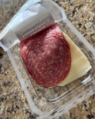 Provolone smelled very weird. Slices did not come apart easily, they tore into tiny shreds. The salami was very sticky and tasted off. Product was 2 weeks before expiration but did not taste that way. If this is intentional, it's gross.. Pay the extra 3 dollars for the boarhead salami and provolone pack.