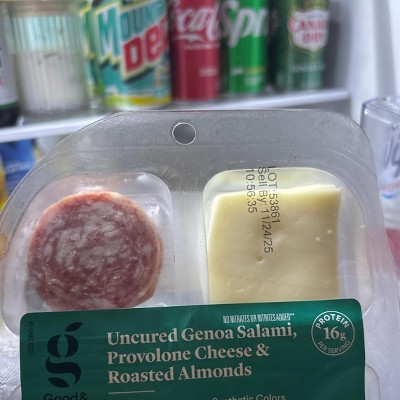 - Good & Gather uncured Genoa salami, provolone cheese and roasted almonds snacker