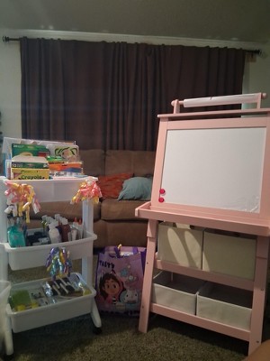 Easel was missing a board for one of the trays. Only 1 tray is functional. I am very disappointed. This was a gift for my granddaughter.
