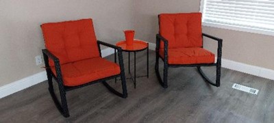 Costway 2PCS Outdoor Wicker Rocking Chair Patio Lawn Rattan Single Chair Glider w/ Cushion Orange