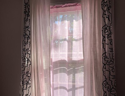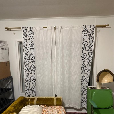 Add a modern look to your window with this 2-Pack of Light-Filtering In This Together Embroidered Window Curtain Panels from Opalhouse™ designed with Jungalow™. The pair of light-filtering curtain panels allows sunlight to softly sift through while offering you moderate privacy. They're made of a cotton-blend fabric in pristine white, and they're accented with a black embroidered doodle pattern for added flair. To fit the curtain rod of your choice, each curtain panel also has back tabs and a rod pocket.
