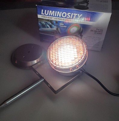 [This review was collected as part of a promotion.] The Luminosity power been LED pond and garden light Last 10 times longer than conventional lighting and has a super bright LED changing colors that changes from red to green and white, it hasn't in lime controller that allows you to change or rotate the colors automatically. It has high quality waterproof covers so it will not get the lights wet. It is great for fountains, ponds, lakes, water falls, or garden landscapes. It is low voltage and energy saving. You can use it in or out of the water. It has 72LED lights on it and is 5 watts with 112 volt outdoor transformer and 133' cord length. It comes with a easy to put together stand I light cover And you do not even have to use the stand for the light. The in line controller is also waterproof and it is easy to use.