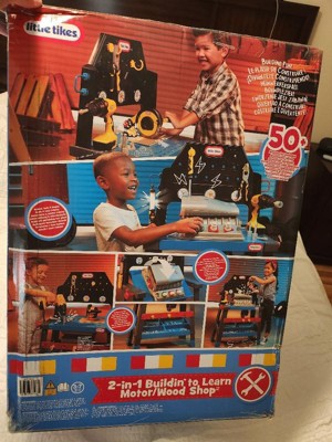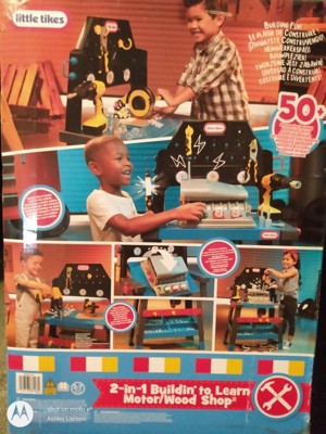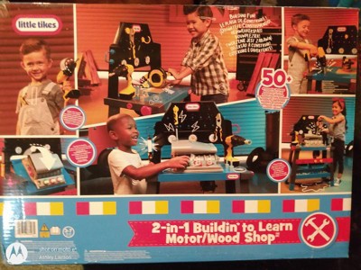 [This review was collected as part of a promotion.] Little Tikes went above and beyond with this 2-in-1 Buildin' to Learn Motor/Wood Shop as its just the cutest toy and my son loves playing with it. Now he can have tools just like daddy's. The bench flips from woodshop to motor shop assembly. The bench has great storage which makes for super easy clean up. This is undoubtedly one of my son's new favs to play with!!! Some assembly is required, as well as batteries, but its so worth it for the hours of imaginative play!