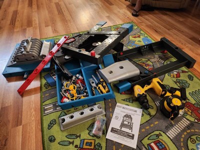 [This review was collected as part of a promotion.] The 2-in-1 Buildin' to Learn Motor/Wood Shop is a hit with my young kids! It was really easy to put together (just a few Philips head screws and some snap in place pieces). The screw driver that can go forwards and backwards was a big hit with all of the kids. Lots of tools and bits that the kids can interact with. Overall, really pleased with the workbench.