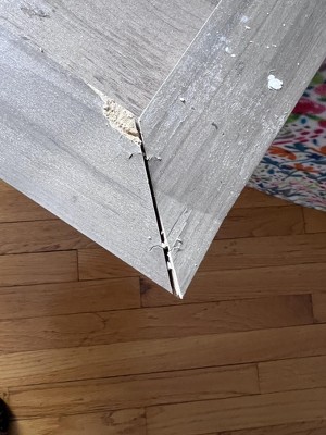 Arrived scratched multiple locations and missing hardware. Bag containing hardware was open and empty and some of screws were imbedded in panels. Drive it straight to the dump.