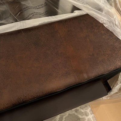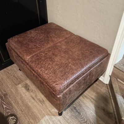 Small Ethan Tray Top Coffee Table Storage Ottoman Distressed Chestnut Brown - WyndenHall: Mid-Century Modern, Faux Leather