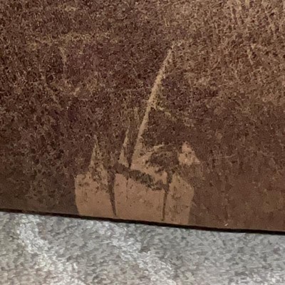 Arrived with marks in three spots. I included images of two of them. It looks like tape or something sticky had been put on then was peeled off. Overall, liked the idea of the design but was disappointed with the quality of material. Will be returning.