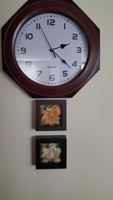 Clockswise Brown Octagon Shaped 11.6-inch Wall Clock - Decorative Wood-Look Plastic Clock for Living Room, Kitchen, or Dining Room - Modern Home Decor