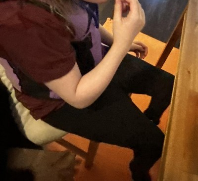 With your child bending to one side, measure the point where the flexes naturally. keep the tape level & comfortably loose.