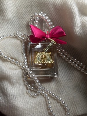 [I received this product in exchange for my honest review] The packaging for Viva La Juicy by Juicy Couture is absolutely adorable. The bottle features a beautiful pink bow with gold charm details that give it a glamorous, feminine look. It's definitely the kind of perfume bottle that looks pretty sitting on a vanity. The fragrance itself has a fruity, sweet scent that feels fun and playful while still being light and easy to wear. I really like that it's not overwhelming or too strong, which makes it perfect for wearing to work since it's unlikely to irritate anyone around you who may be sensitive to strong fragrances. The scent is lightweight and pleasant, but one downside is that it doesn't last extremely long on the skin, so you may need to reapply throughout the day. Overall, if you enjoy fruity, sweet fragrances that are soft and feminine, Viva La Juicy is a great everyday option.