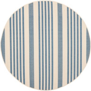Transform any room or outdoor space with the timeless charm of our Beige/Blue Round Area Rug. This exquisite rug features a classic striped pattern that blends soothing beige with serene blue tones for a look that's as versatile as it is elegant.