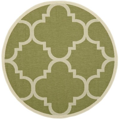 Courtyard CY8680 UV & Stain Resistant Non-Shedding Power Loomed Indoor/Outdoor Area Rug - Green/Ivory - 5'3" Round - Safavieh