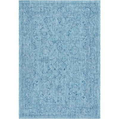 Elevate your living space with the timeless charm of our 4' X 5'-7" Ivory/Navy area rug. This exquisite piece features an alluring medallion and intricate border design that brings a touch of elegance and sophistication to any indoor or outdoor setting. Rendered in a serene ivory and navy palette, the detailed patterns offer both traditional allure and contemporary appeal, making it a versatile addition to your decor.