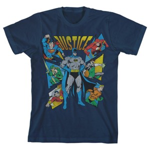 Justice League Batman And Comrades Boy's Navy T-shirt - 1 of 4