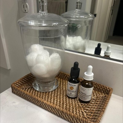 This rattan tray collection is praised for its quality, aesthetic appeal, and versatility in various settings, particularly in bathrooms. Guests appreciate the natural look and sturdy design, making it ideal for organizing toiletries or decorative items. While some mention size discrepancies and minor issues like odors or warping, the overall sentiment leans towards satisfaction with its functionality and style, making it a charming addition to any home.