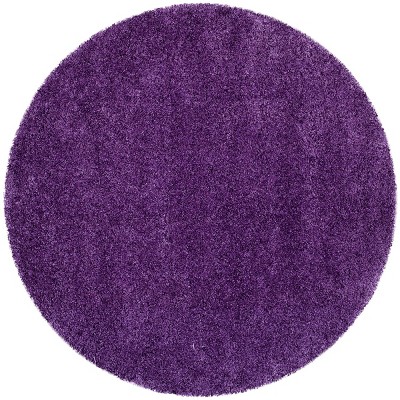 Elevate your living space with the luxurious embrace of our plush round area rug, spanning a comfortable dimension of 5 feet 1 inch in diameter and boasting a sumptuous height of 1 3/4 inches. The alluring purple hue of this shag & flokati styled masterpiece is sure to inject a pop of vibrant color and texture into any room. Expertly crafted in Turkey using a power-loomed technique, this rug promises an exceptional blend of durability and softness, comprising 77% polypropylene, 15% jute, 5% latex, and 3% polycotton (warp).