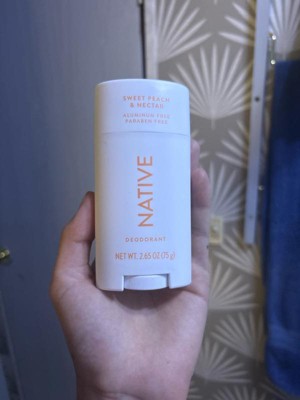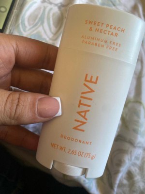 [This review was collected as part of a promotion.] I like native, thanks native for send me Sweet Peach & Nectar Deodorant Stick your Scent is completely amazing. It is hight quality. The deodorant is rapid dry, my Skin is feeling soft and clean. It is premium brand I love it!!!