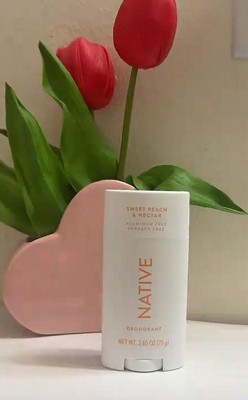 [This review was collected as part of a promotion.] I'm genuinely impressed with this Native deodorant. The peach scent is soft, slightly sweet, and very fresh. One thing that stood out for me is how smooth it applies. It glides on easily and doesn't feel sticky or heavy. Plus, the little heart shape on top is such a cute detail. I also appreciate that it's aluminum - free, which is something I look for in my personal care products. So far it's been keeping me feeling fresh throughout the day without irritation.