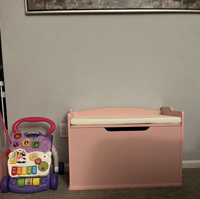 Beautiful bubble gum color. Instructions over all were easy to follow. The top part does not fully shut without the cushion. Very sturdy and spacious storage.