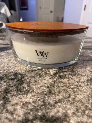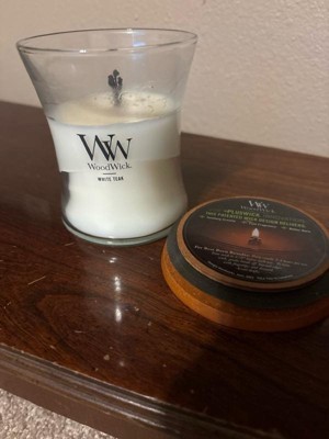 21.5oz Large Hourglass Jar Candle White Teak - WoodWick: Soy & Paraffin Blend, Crackling Wick, 120hr Burn Time