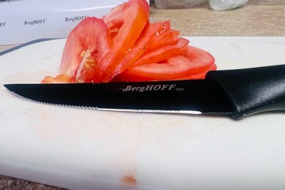 BergHOFF 8Pc Serrated Steak Knife Set with Non-Stick Stainless Steel Blade, 8.5", Black