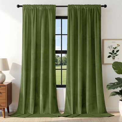 Kate Aurora Royal Living 2 Pack Rod Pocket Light Filtering Velvet Window Curtain Panels - Green