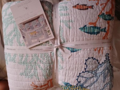 [This review was collected as part of a promotion.] We always rent condos at the beaches, this is the feeling I get when using this beautiful quilt , as if i am on a vacation some. The color are so vibrant and I always tend to wash everything before I use it and it fit perfectly in my front load. I hung it out to dry and this quilt is very light the sham are nice as well. I wish the sham was a little bit more bigger but it does work well. I made some throw pillow and extra pillows case to match. I love that it is reversible if I want to change it up a little. Great quality! It do not look cheaply made or feel rough to the touch. Also this is not a thick quilt great for the spring and summer weather.