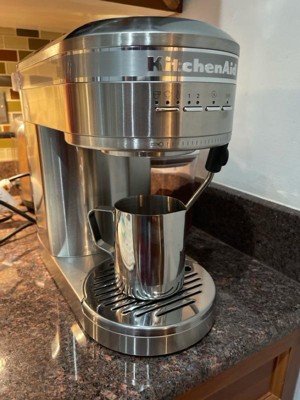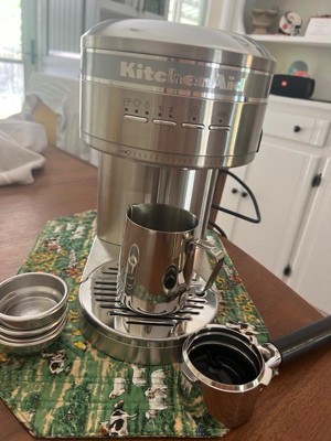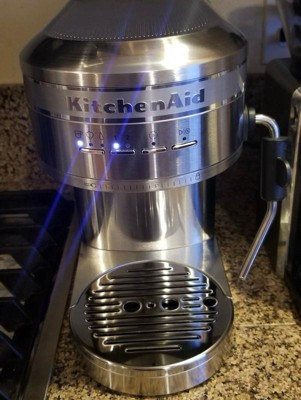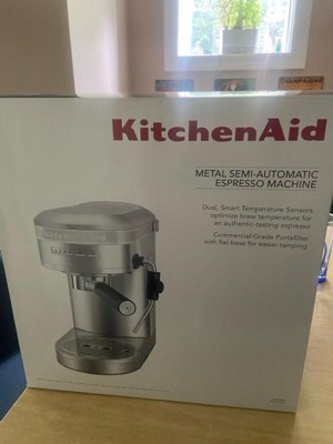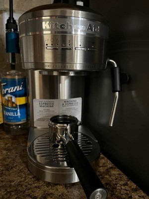 [This review was collected as part of a promotion.] KitchenAid truly lives up to their name. I am truly over the moon for this espresso machine! It has surpassed all my expectations and needs! Making coffee at home has never been so satisfying. First off, the design is so simple and elegant. I love how easy it is to wipe clean before and after brewing an espresso. The initial setup was pretty simple and the instructions are seemingly straightforward. After a few minutes of reading the instructions, I was ready to began filling up my water reservoir (includes a handle) which was a bonus in my book. Next, I found my desired filter basket. (Refer to pg. 6 in manual) for basket selection chart. I used the single wall (2 shot) for my latte of choice. After following the rest of the instructions I was ready to brew. Positioning the portafilter is very easy but make sure to align it correctly with the unlock/lock mechanism. The entire brewing process only took about 30 seconds. The temperature was perfect and the taste was even better! This semi-automatic espresso machine is made remarkably well. It’s durable and has all the features I was looking for in an espresso maker. Overall, I’m very pleased with the craftsmanship of this machine and the overall design. It’s been fun recreating my favorite lattes at home! Reminder: when cleaning the milk frother make sure to point it towards the drip tray or into an empty cup. Otherwise, it will spray hot water everywhere!