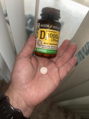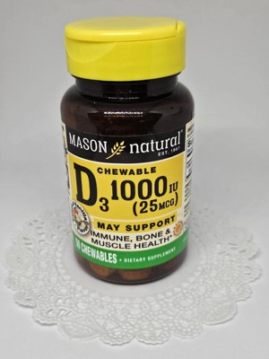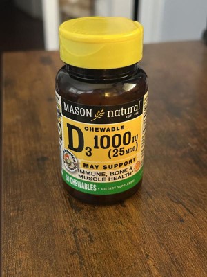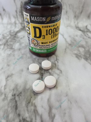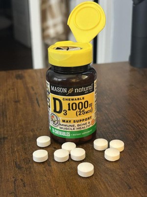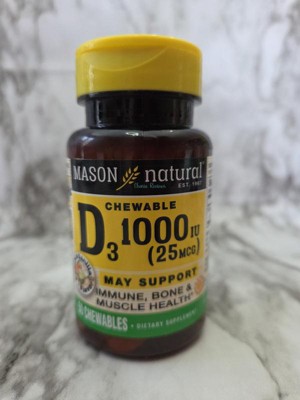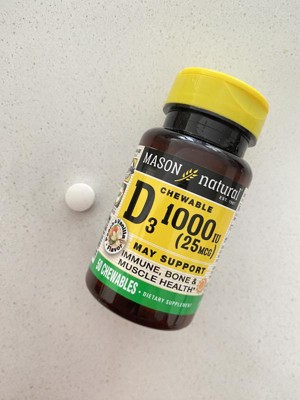 • Mason Natural Vitamin D3 25 mcg (1000 IU) chewables provide 130% of the daily value of vitamin D, which may help support overall health and wellness.