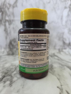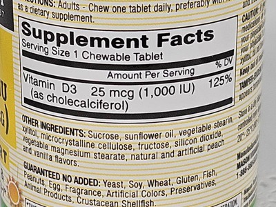 • Our great tasting 1000 IU vitamin D3 chew tabs come in delicious peach vanilla flavor may help support calcium absorption and utilization in the body. Vitamin D may help support normal, healthy cell growth and immunity.