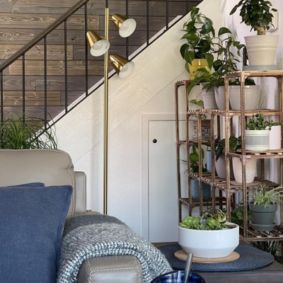This 3-light floor lamp not only illuminates your space, but also illuminates your life. The modern and stylish floor lamp is suitable for all kinds of decoration styles, which is a perfect complement to your living room, bedroom, corridor and office. Three 360° rotatable lampshades secure the light source in the desired position and illuminate every corner of your space. And you can control each lampshade individually to meet your different lighting needs. It includes 3 LED energy-saving bulbs to bring you warm light. The stable base prevents the floor lamp from shaking and dumping, ensuring the safety of your kids at home. This will be your ideal lighting choice.