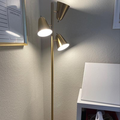 I got two of these and they light up my office well, nice and bright. They turn on by either a step switch button or by each light knob. I like the foot switch, it turns all the lights on easily. The gold is a good color and not brassy, matches my other gold furnishings. I would recommend to a friend, they are not too short either.